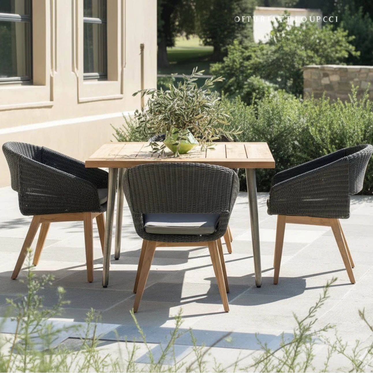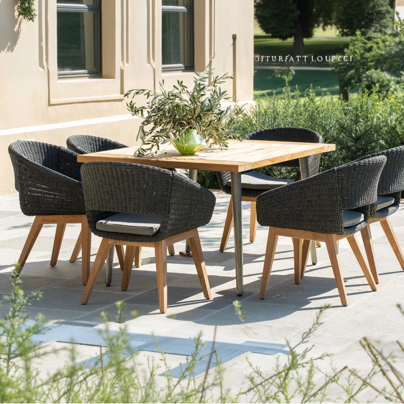 Designed for terraces, gardens, and hospitality environments, Devi Set supports shared meals and conversation while maintaining a refined presence that integrates into outdoor architectural contexts.