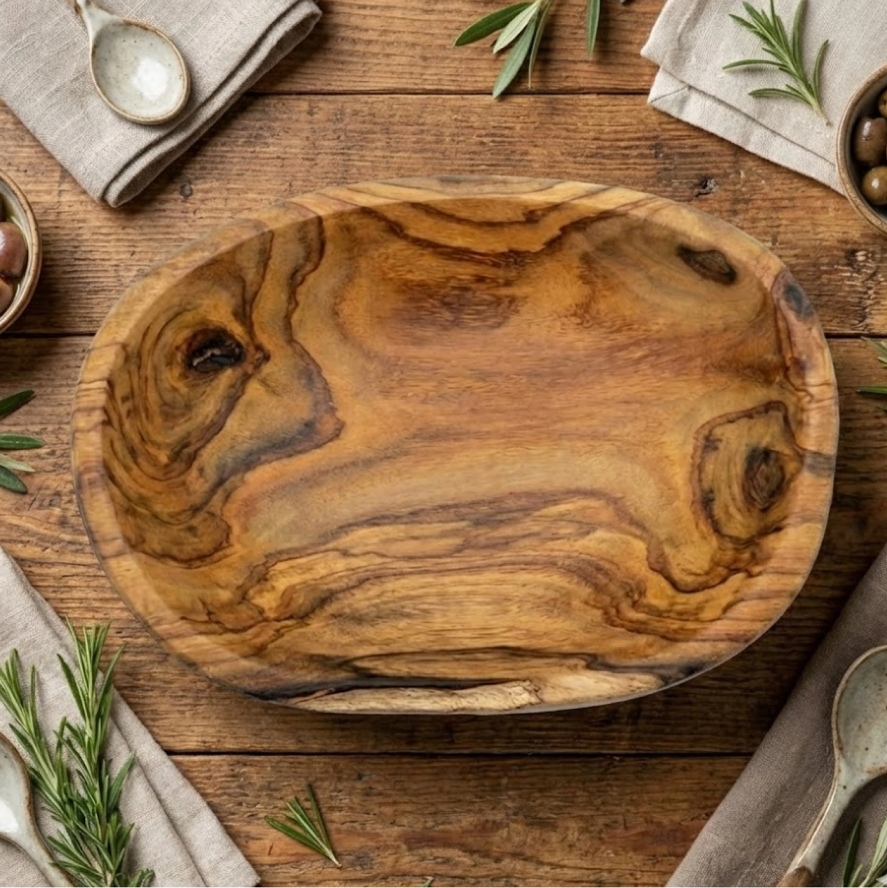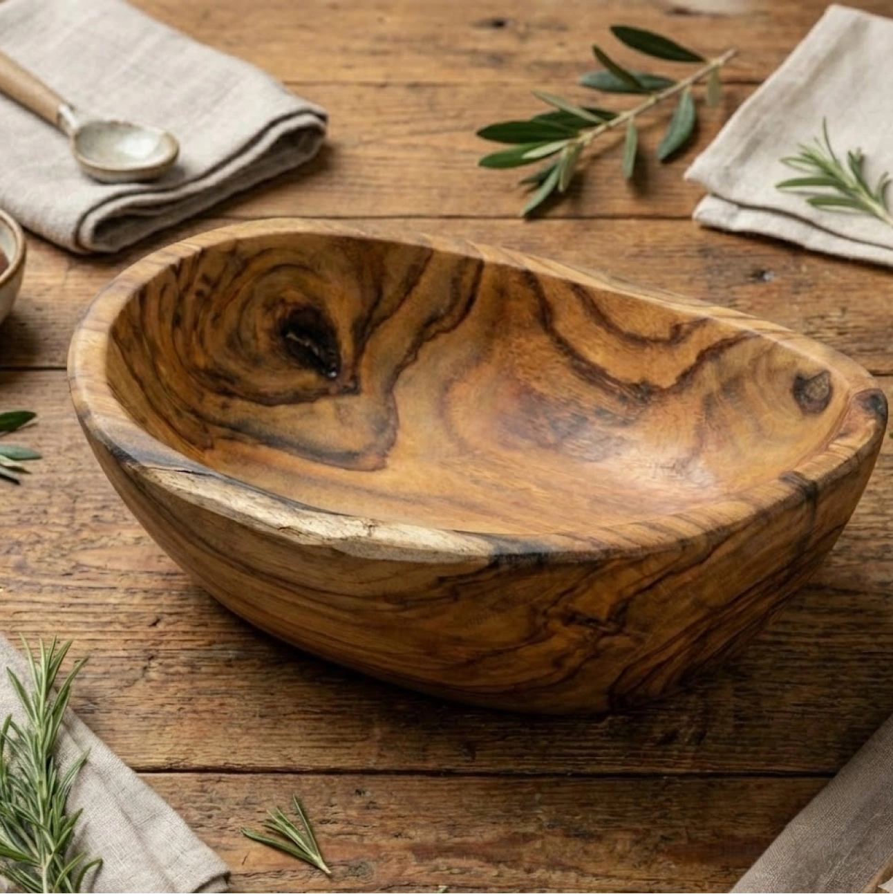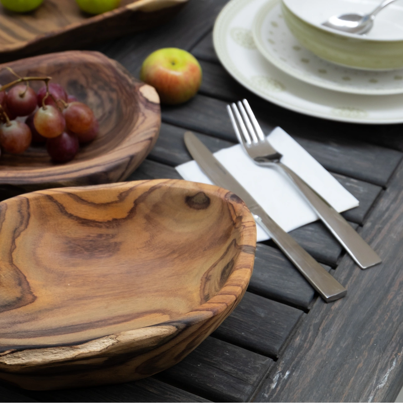 Fruit Bowl features an organic, hand-carved form that celebrates the natural grain and character of solid teak. Each piece is shaped individually, creating a warm, sculptural presence that feels both functional and decorative within everyday living spaces.