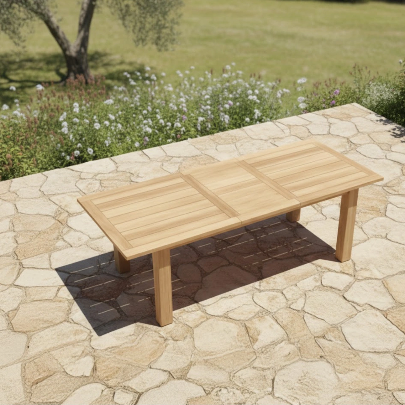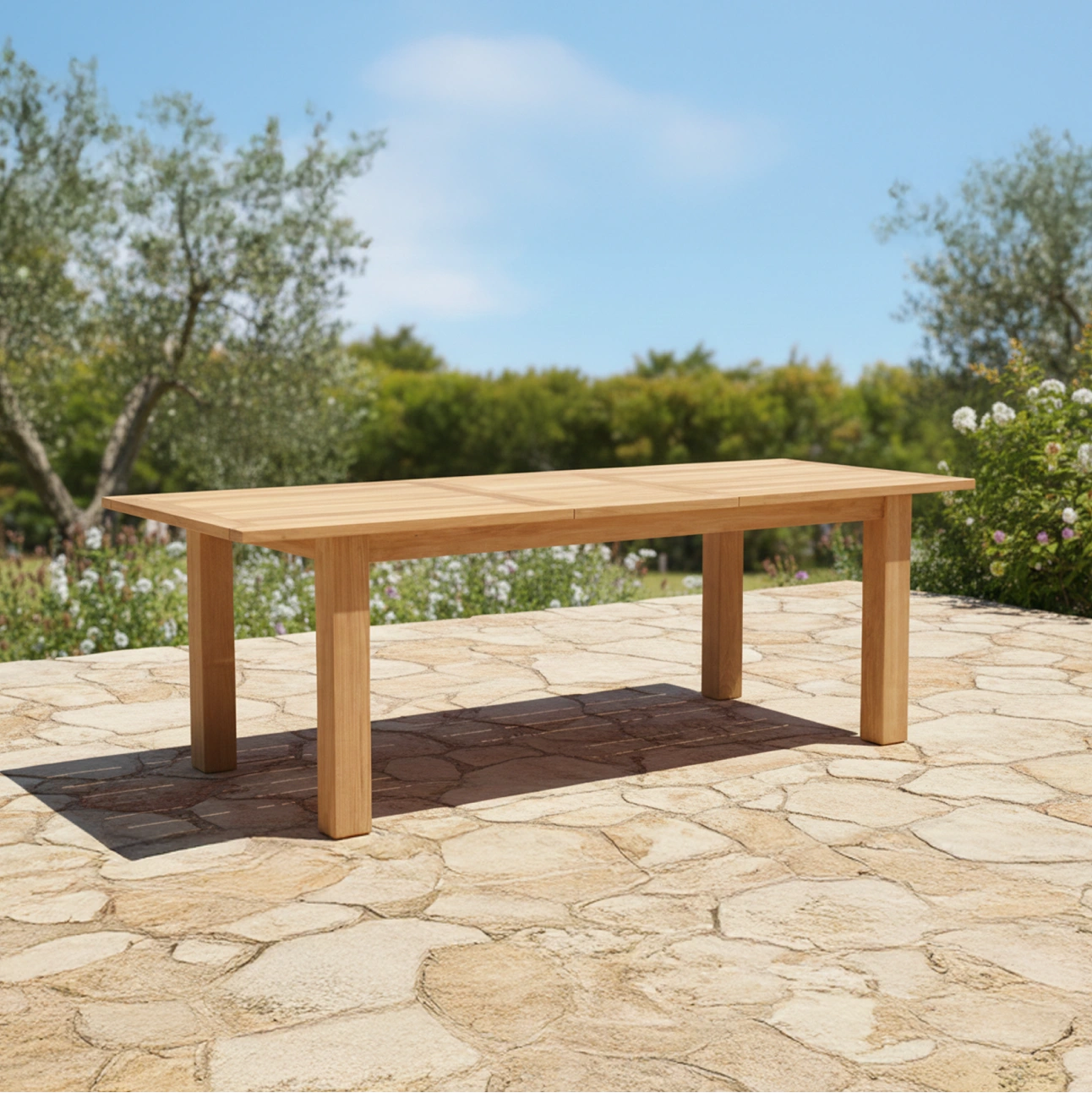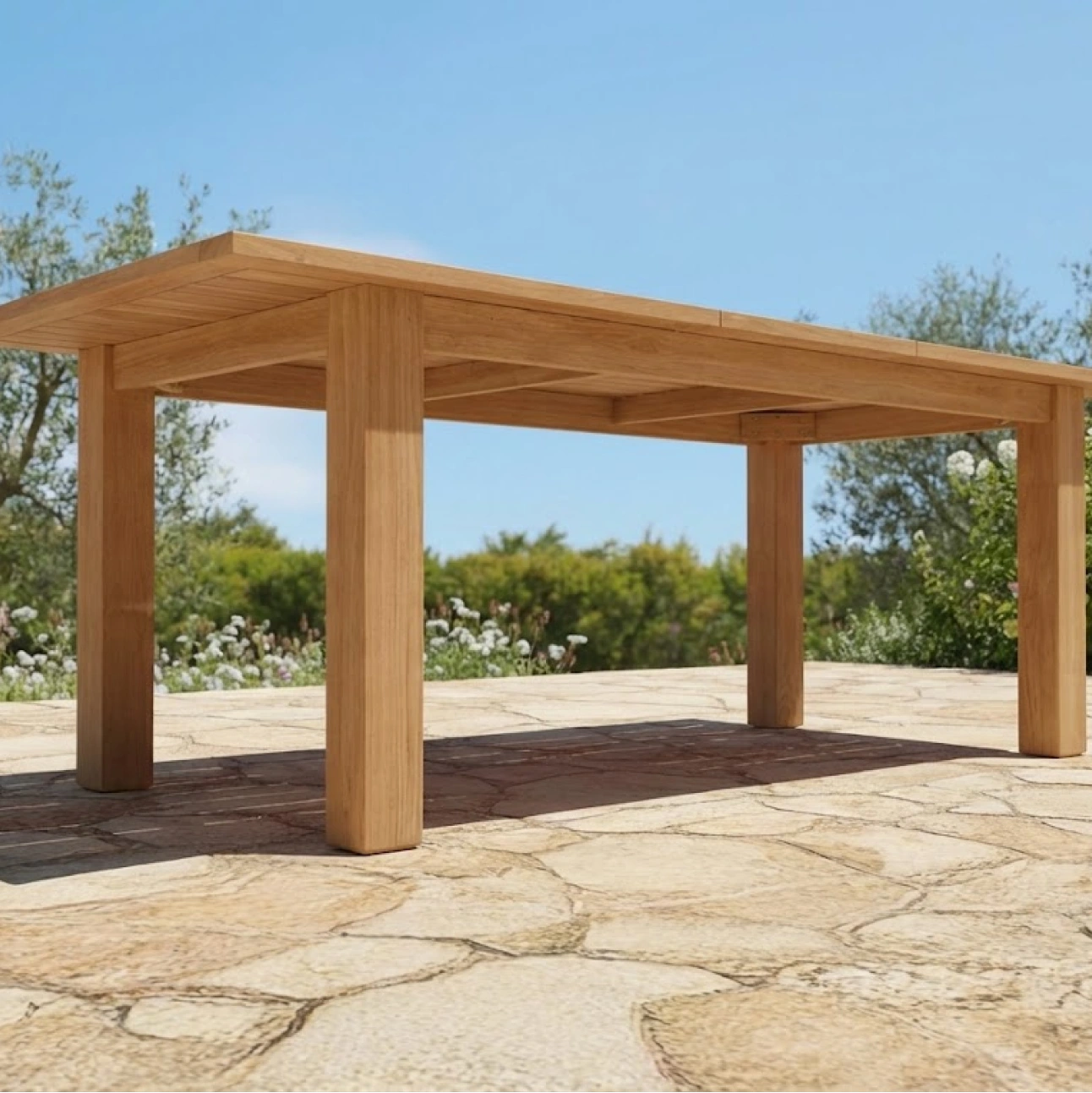 Fun Rectangle Table presents a clean, straightforward rectangular form focused on everyday outdoor dining. Crafted from solid teak, its smooth tabletop and sturdy straight leg construction deliver durability, stability, and a composed visual balance suited to modern outdoor settings.